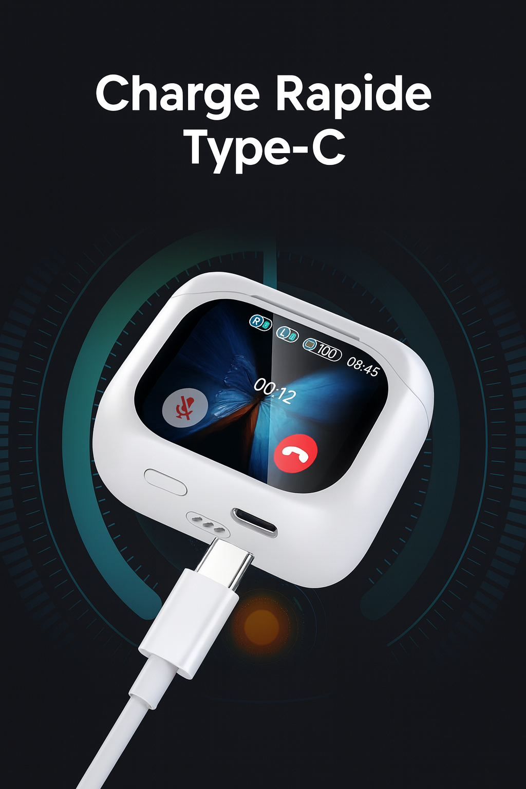 🖱️ Écran tactile intelligent — Visualisez l’heure et la batterie sans sortir votre téléphone.