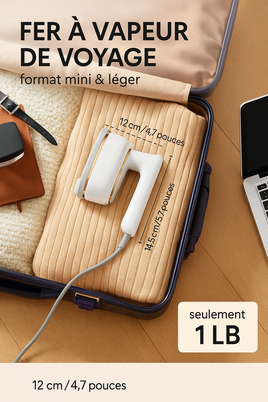 Mini Fer à Repasser 2-en-1 — poignée rotative 180°, sec et vapeur, panneau titane ✨